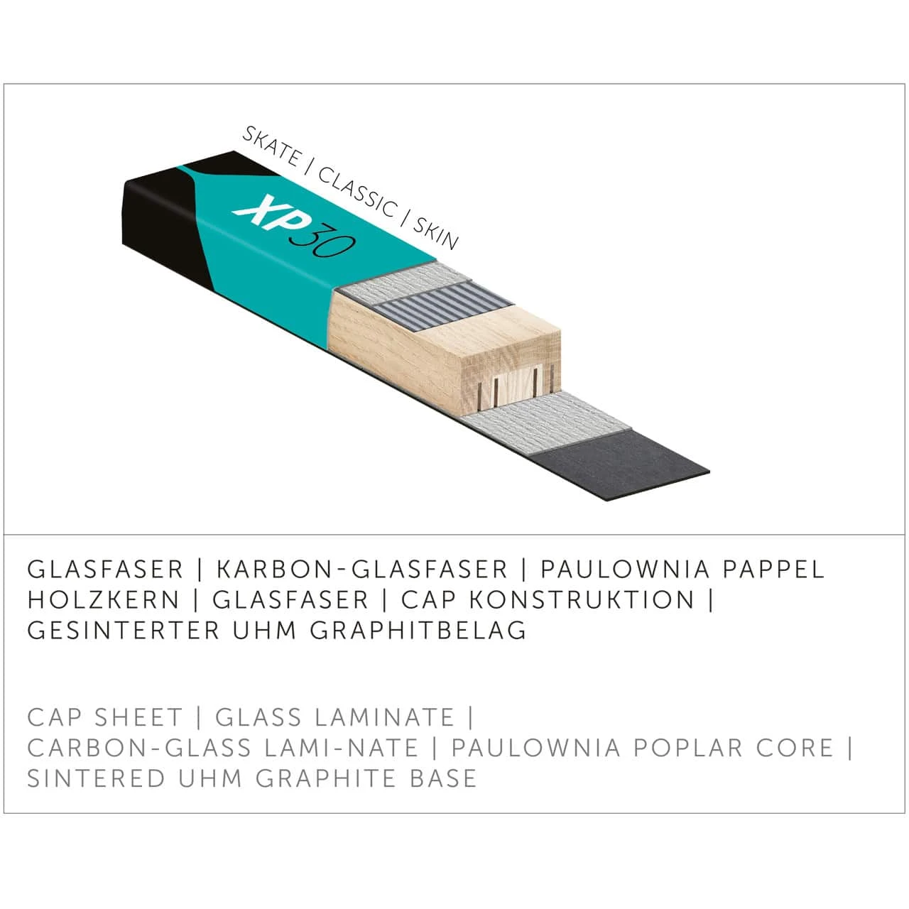 Thanks to its carbon construction, the versatile XP30 Skate offers comfortable gliding and tracking properties.